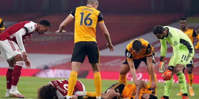 وتعرض خيمينيز لإصابة خطيرة بعد اصطدام قوي مع ديفيد لويز في مباراة الأمس أمام ارسنال في الجولة العاشرة من المسابقة المحلية والتي انتهت بفوز وولفرهامبتون 2-1.