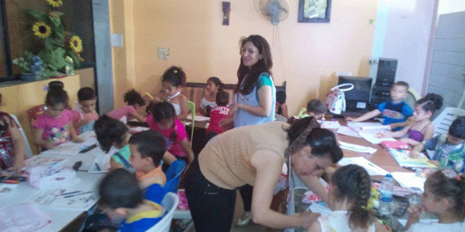 سبعون طفلا وطفلة استهدفتهم ورشة “رسامون صغار” التي أقامها المتطوعون الشباب في “حملة الوفاء لفيروزة” في مقر الحملة بقرية فيروزة بحمص حيث سعت الورشة التي امتدت لثلاثة أيام متتالية الى احتضان المواهب الفتية وصقلها بجلسات مكثفة تم خلالها تطوير إمكانات الأطفال المشاركين وشحذ أدواتهم الفنية في مجال الرسم.