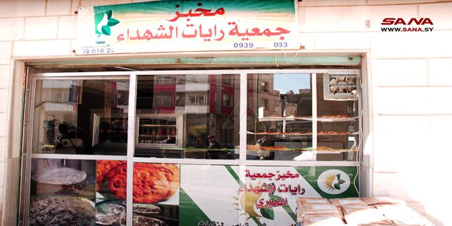 وأوضحت رئيس مجلس إدارة الجمعية لينا أبو حلا أن ريع المخبز يعود لمساعدة أسر الشهداء والجرحى أيضاً، مشيرة إلى أن المخبز المقام بجانب مقر الجمعية ينتج عدداً من أنواع الخبز والمعجنات، وتم تجهيزه بدعم من أحد المتبرعين للجمعية، وهو غسان عكوان الذي اعتبر بدوره أن مبادرته أقل واجب يقدم اتجاه أسر الشهداء والجرحى الذين ضحوا من أجل الوطن.