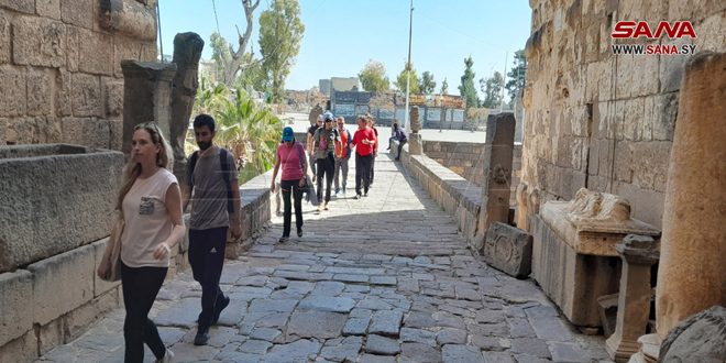 مجموعة سياحية أوروبية تزور آثار بصرى الشام بريف درعا