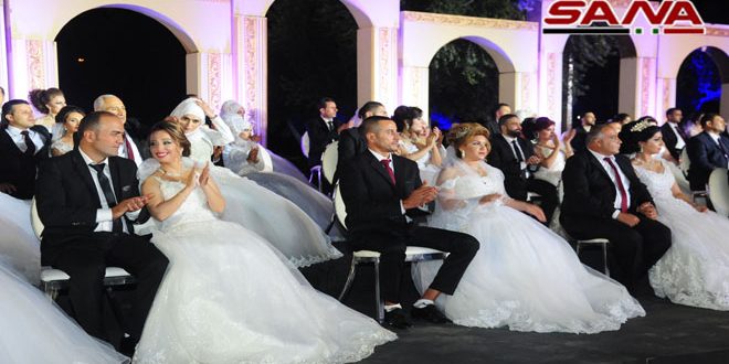 أقام الاتحاد العام لنقابات العمال مساء اليوم العرس الجماعي العمالي الأول لـ “200” عامل وعاملة في مجمع صحارى بريف دمشق.