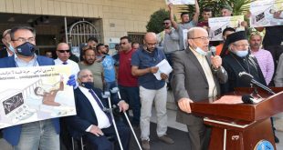 القدس المحتلة-سانا طالب عشرات الفلسطينيين في مدينة البيرة في الضفة الغربية اليوم خلال وقفة تضامنية المجتمع الدولي والمؤسسات الحقوقية والإنسانية بالتدخل العاجل والضغط على سلطات الاحتلال الإسرائيلي وإلزامها بتطبيق القانون الدولي والإفراج عن الأسير ماهر الأخرس المضرب عن الطعام منذ …