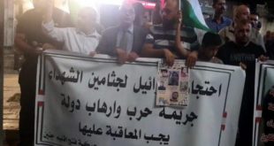القدس المحتلة-سانا شهدت مدينة جنين بالضفة الغربية مساء اليوم وقفة احتجاجية تنديداً باستمرار الاحتلال الإسرائيلي باحتجاز جثامين الشهداء الفلسطينيين في انتهاك صارخ للقوانين والمواثيق الدولية. وفي هذا السياق طالب ذوو الشهداء وممثلو القوى الفلسطينية والمشاركون في الوقفة المجتمع الدولي بالضغط …
