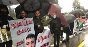 القدس المحتلة-سانا شارك عشرات الفلسطينيين في الضفة الغربية مساء اليوم بوقفتين تضامنيتين دعماً للأسرى في