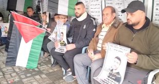 القدس المحتلة-سانا طالب عشرات الفلسطينيين خلال وقفة تضامنية في جنين بالضفة الغربية اليوم المجتمع الدولي والمنظمات الحقوقية والإنسانية وأحرار العالم بالتدخل والضغط على الاحتلال الاسرائيلي للإفراج عن الأسير ناصر أبو حميد المصاب بالسرطان وباسترداد جثامين الشهداء المحتجزة لدى الاحتلال. ووفق …