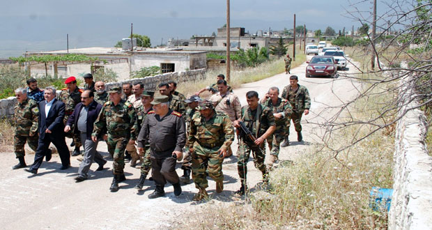 وقال الأمين القطري المساعد لحزب البعث للقائد الميداني “نحن نرفع رؤوسنا بكم وبأمثالكم من أبطال الجيش العربي السوري الذين سطروا المعجزات وجعلوا ثرى الوطن عصياً على هؤلاء التكفيريين”.