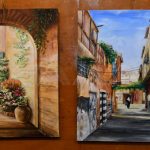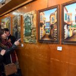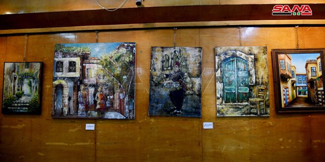 الفنانة التشكيلية باسمة الحريري شاركت بثلاثة أعمال عن التراث الدمشقي مستخدمة الألوان الزيتية للحارات والبيوت مبينة أهمية استحضار التراث في أعمال الفن التشكيلي.