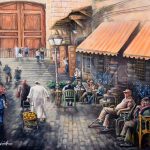 الفنان التشكيلي أحمد شما أوضح أنه اختار لوحة عن أحد أحياء دمشق القديمة وللباب الغربي في الجامع الأموي وقهوة النوفرة حيث يشكل هذا المكان مادة توثيقية حقيقية للواقع الدمشقي وكأنها صورة فوتوغرافية قدمها بلوحة تشكيلية.