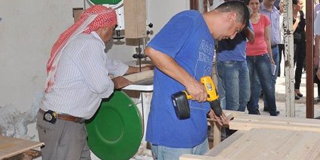 والهدف من هذه الورش حسب دعيج إحياء الحرف اليدوية وتأمين فرص عمل لأصحابها تمكنهم من المشاركة فى خدمة مجتمعهم المحلى مبينا أنه تم تأمين بعض المشاريع الداعمة لهذه الورش.