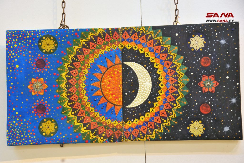 التشكيلية نهى زيود قدمت من خلال معرضها الفردي الخاص الأول نحو 36 لوحة معتمدة على فن “الماندالا” بأساليب وتقنيات مختلفة وأشكالا دائرية وزخارف متنوعة لجمهور المركز الثقافي العربي في أبو رمانة.