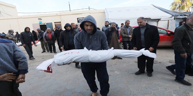 وأوضحت الوزارة في بيان لها اليوم أن الاحتلال يواصل عدوانه لليوم الـ 156 على القطاع بأشكال متعددة ما بين إعدامات ميدانية ومجازر وإبادة جماعية ومسح لأحياء سكنية بمن فيها، ما أدى إلى ارتفاع عدد ضحايا العدوان المستمر منذ السابع من تشرين الأول الماضي إلى 31045 شهيداً و72654 جريحاً، لافتة إلى أن عدداً من الضحايا لا يزال تحت الركام وفي الطرقات، حيث يمنع الاحتلال وصول طواقم الإسعاف والدفاع المدني إليهم.