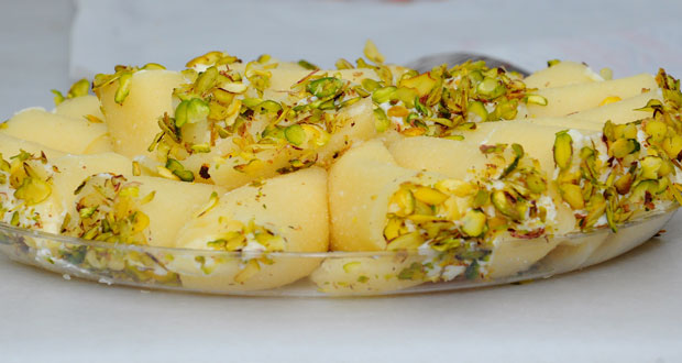 وقال بعد إضافة الجبنة نقوم بدهن الصواني بالسمنة ثم بمد العجينة عليها لافتا الى ان البعض يفضل حلاوة الجبن السادة والبعض الأخر يفضل المحشية بالحليب المطبوخ بالسميد أو القشطة والمكسرات .
