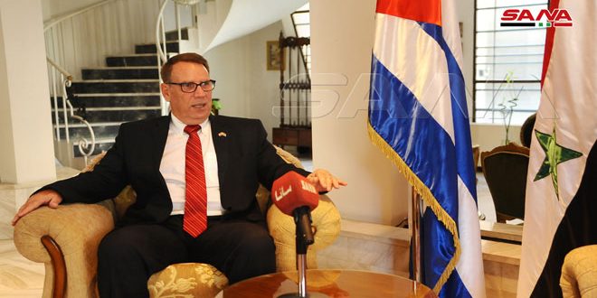 وفي حديث لـ سانا أشار سفير كوبا إلى أن سورية وكوبا تحتفلان هذا الشهر بالذكرى الـ 54 لإقامة العلاقات الدبلوماسية في وقت تستمران فيه بالصمود في وجه التحديات وبمواجهة عدو مشترك يتمثل بالولايات المتحدة الأمريكية التي تفرض حصارا اقتصاديا على شعبي البلدين.