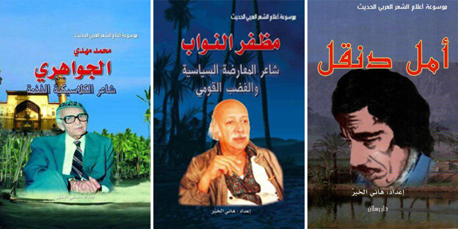 ثلاثة من كبار الشعراء العرب في القرن العشرين ينتمون لمدارس مختلفة بثوا بقصائدهم روح المقاومة والنضال صدر عن تجربتهم ثلاثة كتب ضمن موسوعة أعلام الشعر العربي في العصر الحديث.