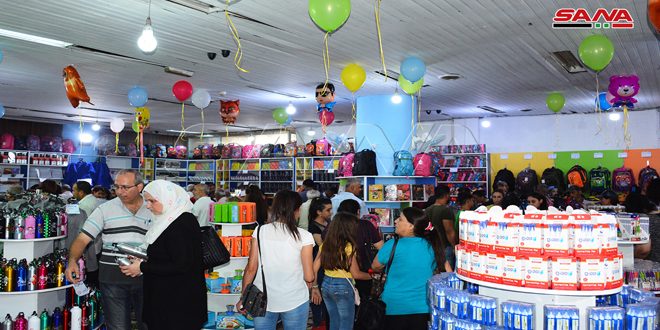 افتتحت المؤسسة السورية للتجارة اليوم معارض للقرطاسية والمستلزمات المدرسية في 16 مركزاً وصالة بيع لها في محافظة اللاذقية، في إطار جهودها للتدخل الإيجابي في توفير هذه المواد في جميع المحافظات بأسعار مخفضة مع حلول العام الدراسي.