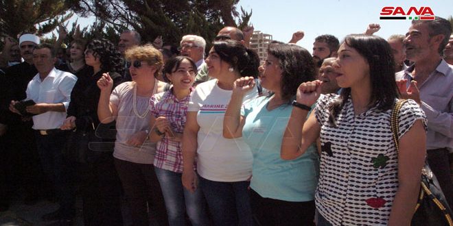 وأكد المشاركون ثقتهم المطلقة بأبطال الجيش وإرادتهم القوية وعزيمتهم الصلبة لمواصلة انتصاراتهم حتى دحر الإرهاب ورعاته وتطهير جميع الأراضي السورية وإعادة الأمن والأمان إلى كامل ربوع الوطن.