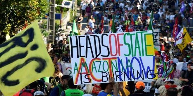 تظاهر آلاف النشطاء المناهضين للعولمة والمدافعين عن البيئة اليوم إلى جانب محتجي (السترات الصفراء) للتعبير عن رفضهم السياسات الاقتصادية والمناخية للدول الصناعية الكبرى وذلك قرب منتجع بياريتس الساحلي الفرنسي.