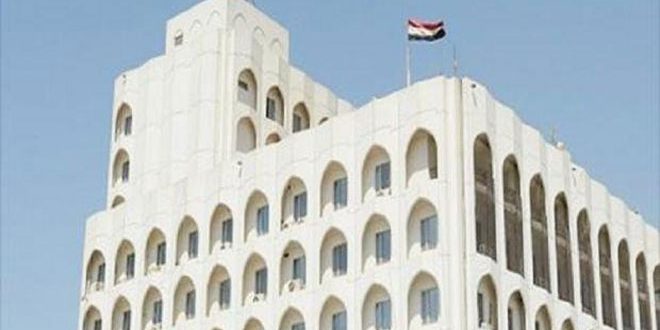 وقال أحمد الصحاف الناطق الرسمي باسم وزارة الخارجية العراقية في بيان تلقت مراسلة سانا في بغداد نسخة منه “إن وزارة الخارجية ستتخذ كل الإجراءات الدبلوماسية والقانونية اللازمة من خلال الأمم المتحدة ومجلس الأمن الدولي ومن خلال التواصل مع الدول الشقيقة والصديقة للتصدي لأي عمل يخرق سيادة العراق وسلامة أراضيه”.