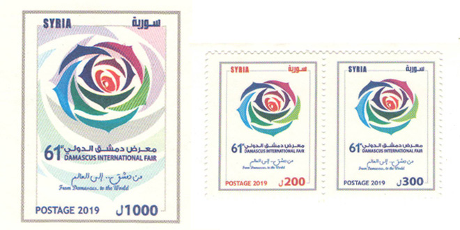 أصدرت المؤسسة السورية للبريد اليوم طوابع بريدية تذكارية بمناسبة الدورة الـ 61 لمعرض دمشق الدولي بقيمة 200 و300 ليرة سورية إضافة إلى بطاقة بريدية بقيمة ألف ليرة سورية.