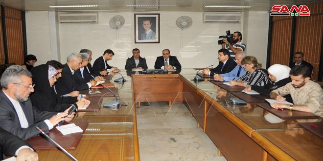 وبحث وزير الاقتصاد والتجارة الخارجية الدكتور سامر الخليل مع الوزير الإيراني والوفد المرافق آليات تعزيز التبادل التجاري والاقتصادي وتوسيع مجالات الاستثمار بين البلدين وذلك في مبنى الوزارة بدمشق.