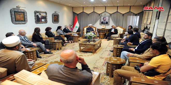 ودعا المفتي حسون وفدا من البرلمان الأوروبي برئاسة النائب تيري مارياني عضو اللجنة البرلمانية للشؤون الخارجية في الجمعية الوطنية الفرنسية خلال لقائه بهم اليوم إلى نقل حقيقة ما يجري في سورية إلى شعوبهم لدحض ما تروجه وسائل الإعلام المغرضة من أكاذيب محذرا من مغبة احتضان بعض الدول الغربية للفكر المتطرف المؤذي للجميع.