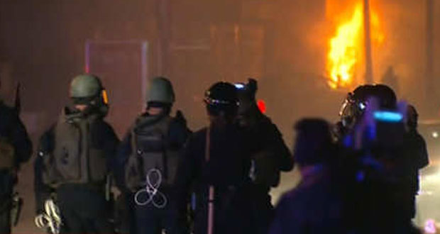 وبعيد إعلان قرار هيئة المحلفين بدأ المتظاهرون بإلقاء أشياء على قوات الأمن وهم يرددون”لا عدالة لا سلام”في حين طلب منهم رجال الشرطة التوقف.