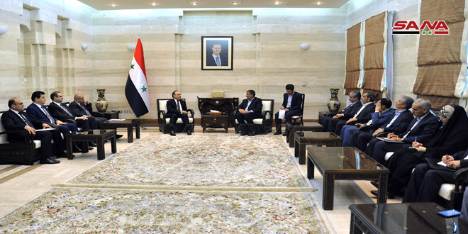 بحث رئيس مجلس الوزراء المهندس عماد خميس مع وفد إيراني برئاسة وزير الطرق وبناء المدن محمد إسلامي رئيس اللجنة المشتركة العليا للتعاون الاقتصادي بين سورية وإيران تعزيز التعاون في المجالات الصناعية والتجارية والاستثمارية وأهمية التواصل بين الشركات الإيرانية والسورية المشاركة في معرض دمشق الدولي لبناء أسس متينة للتعاون بين الفعاليات التجارية من القطاع الخاص.