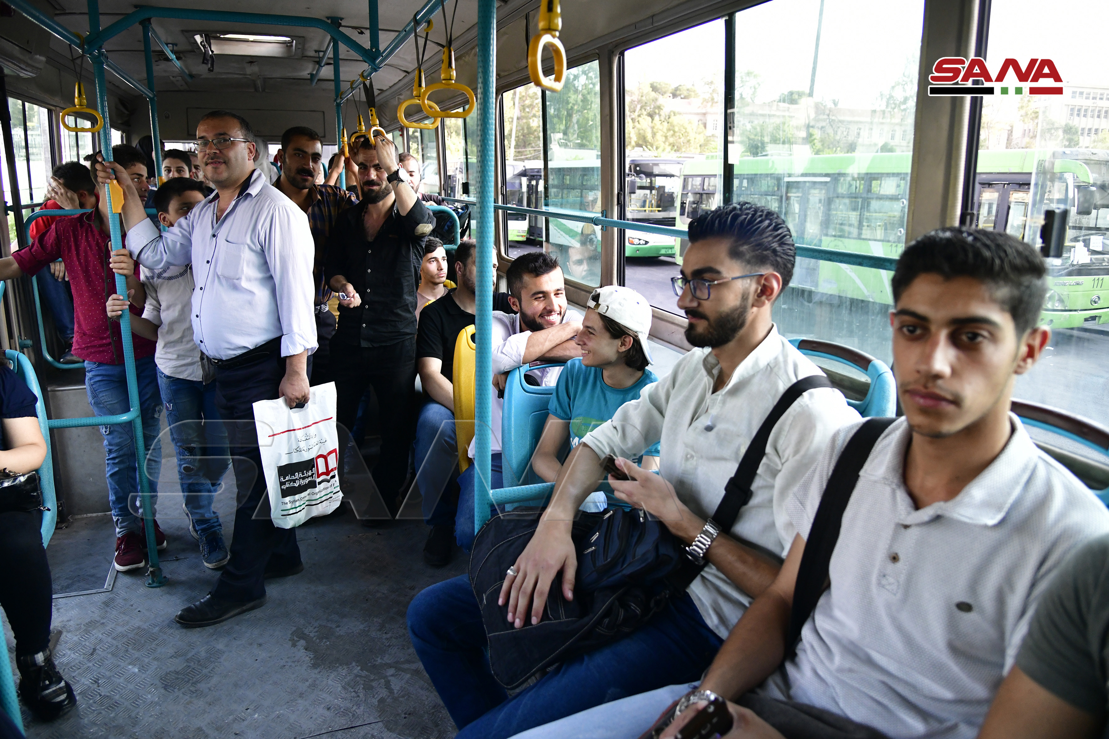 سانا رصدت حركة المواطنين في مراكز الباصات وأثناء دخولهم المحطة وركوبهم القطار حيث عبر عدد من المواطنين عن ارتياحهم لتوافر كوات قطع تذاكر دخول المعرض في مراكز الانطلاق ومحطة القدم للقطارات والتسهيلات المقدمة لهم وعدد الباصات في مراكز الانطلاق الموزعة بأماكن عدة ما سهل حركة وصولهم إلى المعرض.