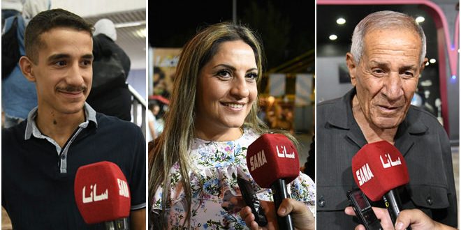 المدرس المتقاعد إيليا معمر القادم من محافظة السويداء أوضح انه منذ خمسة عشر عاما لم يزر المعرض ولكنه قرر هذا العام زيارته برفقة ولده الطالب الجامعي لافتا إلى الاختلاف الكبير الذي لاحظه بين الأمس واليوم قائلا “أدهشني المعرض والأجواء الجميلة التي شاهدتها” ولا سيما المشاركات المتعددة والمتنوعة بينما لفت ابنه نبيل الطالب في كلية الهندسة الميكانيكية الى أنه لم يتوقع استحواذ المدينة والأجنحة على هذه المساحة الكبيرة ولا سيما أننا مررنا بحرب طويلة لافتا إلى أنه زار قسم السيارات والتكنولوجيا للتعرف على كل جديد والتزود بالخبرات المفيدة لحياته الجامعية في حين قالت السيدة جهينة جربوع التي حضرت من محافظة السويداء بأنها من زوار المعرض الدائمين وتتردد كل عام لزيارته والاطلاع على كل جديد فيه لافتة إلى أن الوضع هذا العام ممتاز بفضل بواسل جيشنا الذين أعادوا الأمن والاستقرار والأمان لقسم كبير من المناطق في سورية.