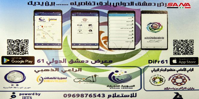 بهدف تقديم أفضل الخدمات للراغبين بزيارة معرض دمشق الدولي أو الاطلاع على تفاصيله من أي مكان صممت شركة تقنية بالتعاون مع المؤسسة العامة للمعارض والأسواق الدولية التطبيق الإلكتروني “معرض دمشق الدولي 61” المتاح على جميع أجهزة الخليوي من خلال تحميله عبر أسواق التطبيقات الإلكترونية المعروفة.