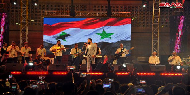 وأوضح إبراهيم لسانا أنه يغني اليوم على أرض المعرض بمناسبة انتصارات سورية في مكان يمثل الصورة الحقيقية والجميلة لهذا البلد العريق.