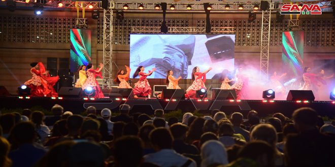 وفي الفقرة الأخيرة من العرض قدمت مجموعة من الأغاني الوطنية كأغنية “هي هي يا شام” و”بالفرح” و”العز بيلبقلك سورية” مع الرقصات والدبكات التعبيرية وأغنية “صار الحلم بيكبر معنا” التي تتغنى بحب الشام وتراثها وتاريخها.