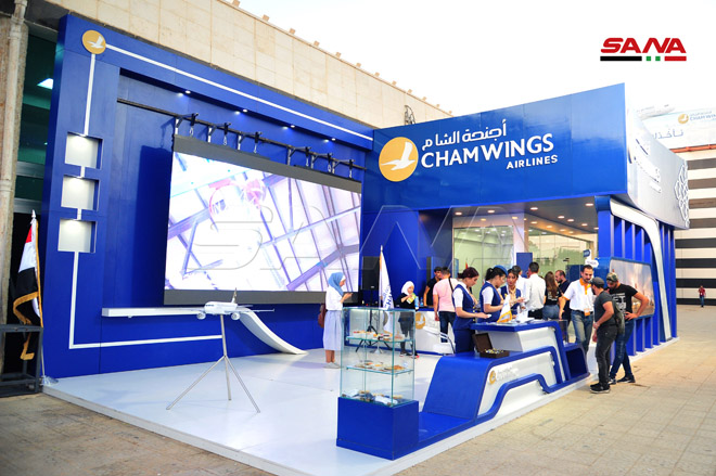 تشارك أجنحة الشام للطيران ضمن فعاليات معرض دمشق الدولي بدورته الـ 61 من خلال جناحها الذي يقدم للزوار العديد من المسابقات بالإضافة لعروض تخفيض على أسعار تذاكر السفر وأجور الشحن الجوي.