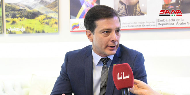 السفير الفنزويلي أعرب عن أمله في أن تسفر هذه المشاركة بالمعرض عن توقيع اتفاقيات بين الشركات الفنزويلية والجانب السوري.