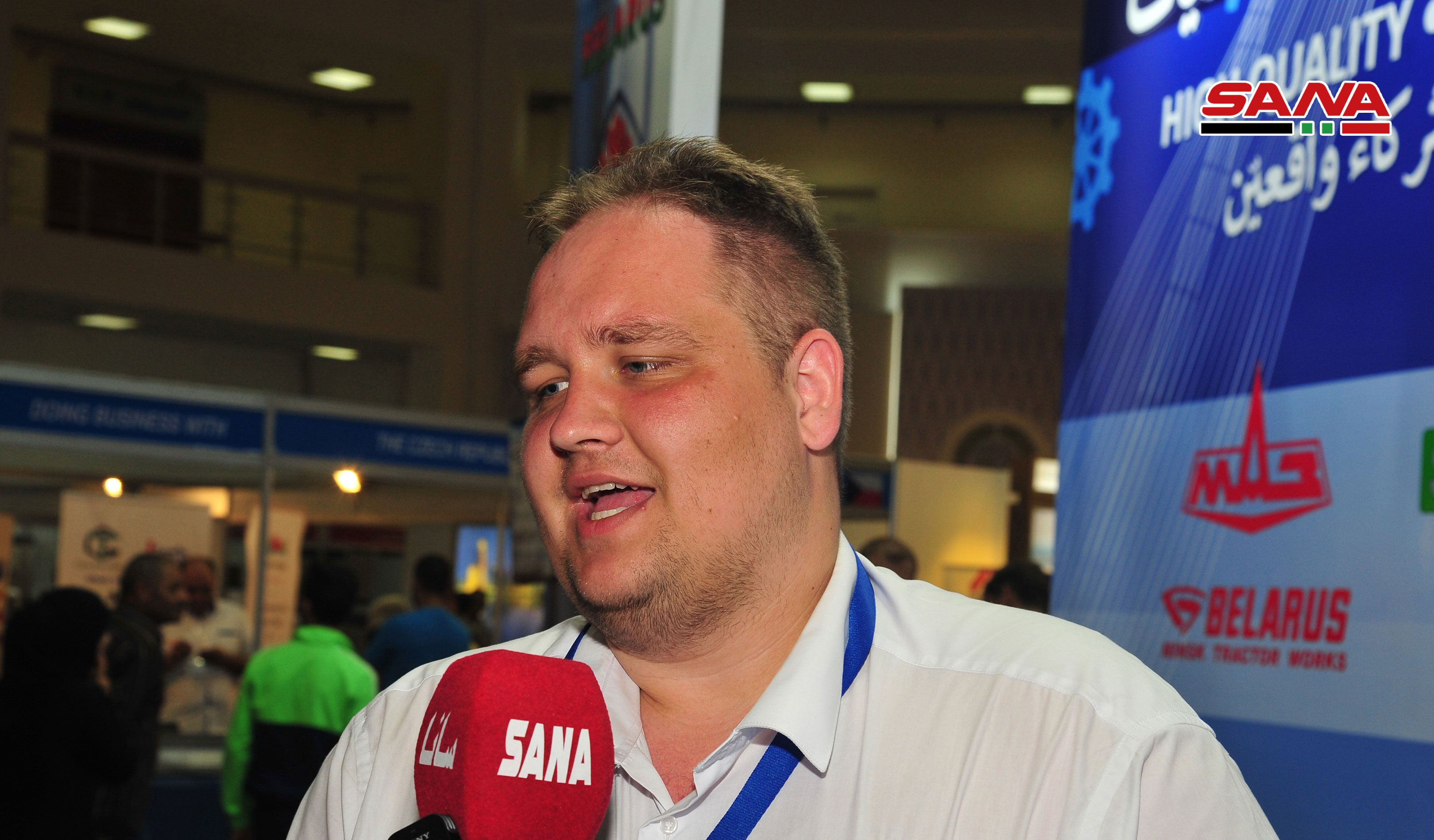 ديمتري أباناسيك ممثل شركة “موغيلف ليفتماش” البيلاروسية العاملة في مجال تصنيع المصاعد الكهربائية رأى بالمعرض فرصة لتعزيز الروابط مع وكالة شركته في دمشق ومحاولة توسيع التواصل مع رجال الأعمال السوريين الأمر الذي سيساعد في تعميق العلاقات الاقتصادية بين البلدين وزيادة فوائدها بما يخدم مصالح شعبيهما.