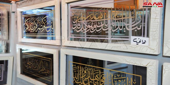 لوحات فنية لحرفيي النحت والحفر على الزجاج بمعرض دمشق الدولي