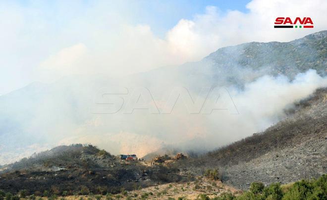 من عمليات إخماد حريق غابات أبو كليفون وحراج طاحون الحلاوة وعين الكروم بمنطقة الغاب