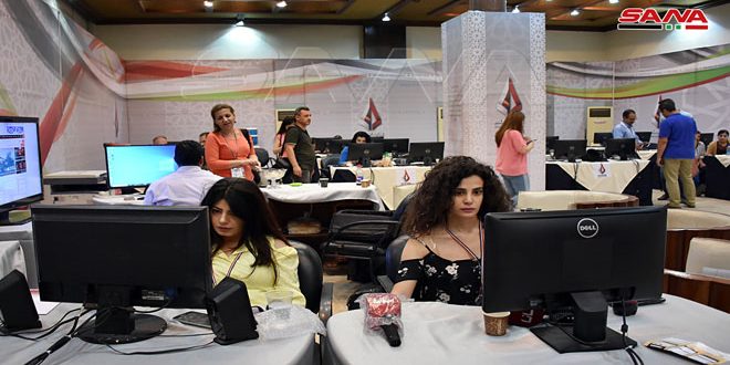 فيما نوه علي حسن مراسل أخبار الفضائية السورية بالتسهيلات والخدمات المقدمة للإعلاميين في المركز لممارسة عملهم من أرض المعرض مباشرة ودون عراقيل لافتا إلى أن الكوادر الإعلامية لم توفر أي جهد في عكس وايصال التغطية الواقعية والحقيقية لحظة بلحظة لمعرض دمشق الدولي للمساهمة في تجسيد شعار دورته “من دمشق إل العالم”.
