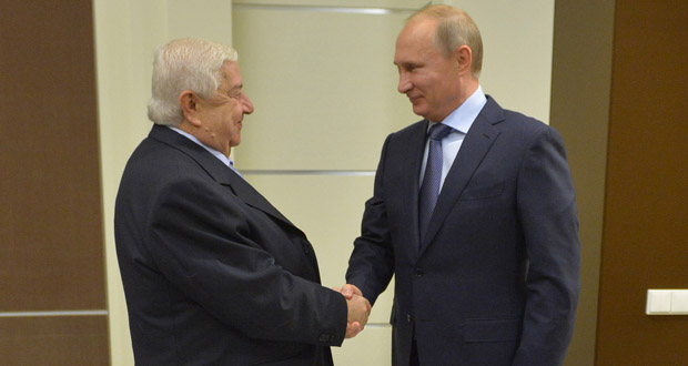 التقى الرئيس الروسي فلاديمير بوتين مع نائب رئيس الوزراء وزير الخارجية والمغتربين وليد المعلم أمس في مدينة سوتشي الروسية.