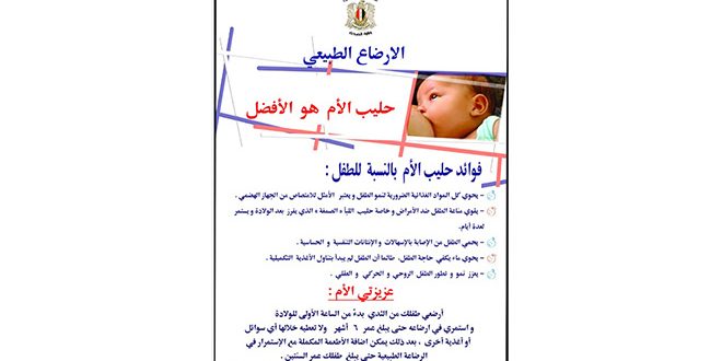 بدورها ذكرت منسقة برنامج التغذية بمديرية صحة اللاذقية الدكتورة سهام مصطفى أن نشاطات التوعية بمناسبة الأسبوع العالمي للإرضاع الطبيعي الذي يصادف في الأسبوع الأول من آب كل عام وصلت لنحو 8 آلاف سيدة عبر 104 مراكز صحية و4 مشاف صديقة للطفولة فضلا عن ندوات ومحاضرات بالتعاون مع مختلف الجهات ذات العلاقة.