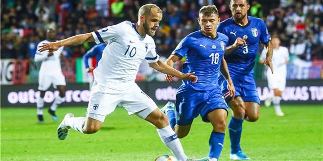 وتتصدر إيطاليا المجموعة العاشرة برصيد 18 نقطة من ست مباريات وتتقدم بست نقاط على فنلندا التي ما زالت في طريقها للتأهل لأول مرة إلى بطولة كبرى رغم الهزيمة.