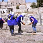 وبين فريد العقاب عضو المكتب الإداري للاتحاد الوطني لطلبة سورية بفرع جامعة حلب أن العمل يتم بشكل جماعي ويتم فرز الأحجار الأثرية بشكل يدوي وترحيل الأنقاض والأتربة.