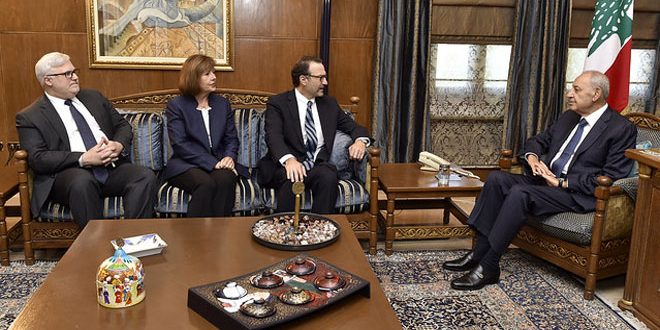 وشدد بري خلال لقائه اليوم في بيروت مساعد وزير الخارجية الأمريكي للشرق الأدنى دايفيد شينكر حرص لبنان على الاستقرار والتزامه بالقرارات الدولية ولا سيما القرار 1701.
