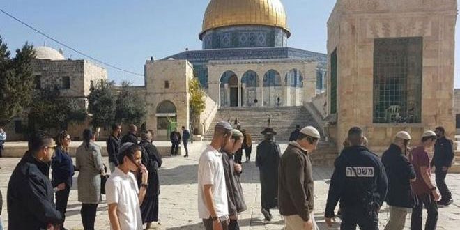 وذكرت وكالة وفا أن عشرات المستوطنين اقتحموا الاقصى من جهة باب المغاربة ونفذوا جولات استفزازية في باحاته بحراسة مشددة من قوات الاحتلال.