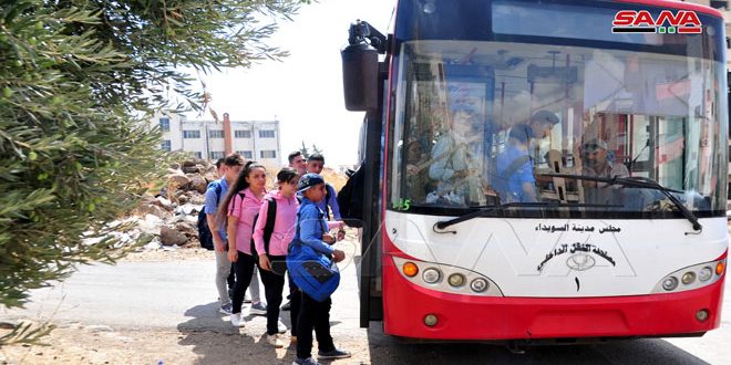 أعلن مجلس مدينة السويداء عن بدء تسيير رحلتين لباصات النقل الداخلي اليوم وفق مسارين ضمن المدينة بهدف تخديم طلاب المدارس وتأمين وصولهم بالوقت المناسب.