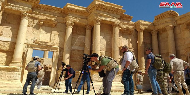 زار وفد يضم إعلاميين وخبراء ومحللين سياسيين من جمهورية روسيا الاتحادية مدينة تدمر الأثرية.