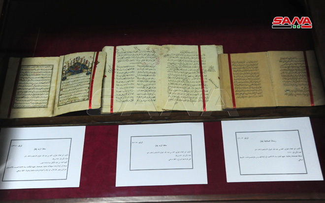 ولرسائل المعري المشهورة حصة ضمن المعرض الذي عرف الزوار بمخطوط (رسالة الملائكة) الأخت الشقيقة لرسالة الغفران والتي يحاور فيها المعري الملائكة وينتقل إلى العالم الآخر معالجاً قضايا صرفية بحتة إضافة إلى رسالة الغفران المشهورة والرسالة الإغريقية ورسالة الأوزان الشعرية وشرح ديوان المعري ومخطوط صفوة الصفوة.