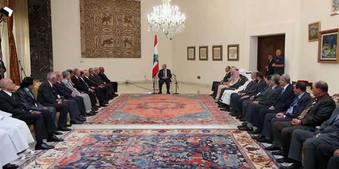 شدد الرئيس اللبناني العماد ميشال عون على التمسك بالقضية الفلسطينية محذراً في الوقت ذاته من المخططات الصهيونية التي تهدف إلى فرض الحلول على الدول العربية عبر ما تسمى “صفقة القرن”.