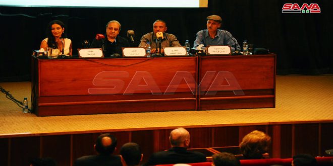 ووزع في نهاية الندوة التي أدارها الإعلامي نضال قوشحة وبحضور حشد من المثقفين والإعلاميين وزوار المعرض دروع تكريمية على مخرج الفيلم والفنانين لحام وحنا.