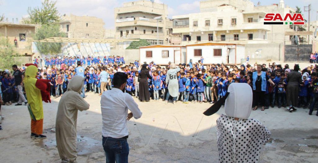مدرستي إطلالة فرح احتفالية للأطفال أقيمت في مدينة حلب اليوم وتضمنت أنشطة ترفيهية وثقافية وعروضا مسرحية هادفة.